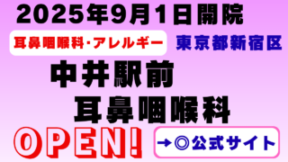 2025年9月1日、東京都新宿区に開院した中井駅前耳鼻咽喉科。耳・鼻・のどの一般診療から花粉症・アレルギー治療、めまい外来や睡眠時無呼吸症候群外来まで幅広く対応。小児耳鼻科や補聴器外来もあり、お子さまから高齢者まで安心して通院可能。都営大江戸線・西武新宿線「中井駅」すぐの好立地でWEB予約OK。地域に寄り添う、頼れる耳鼻咽喉科クリニックです。