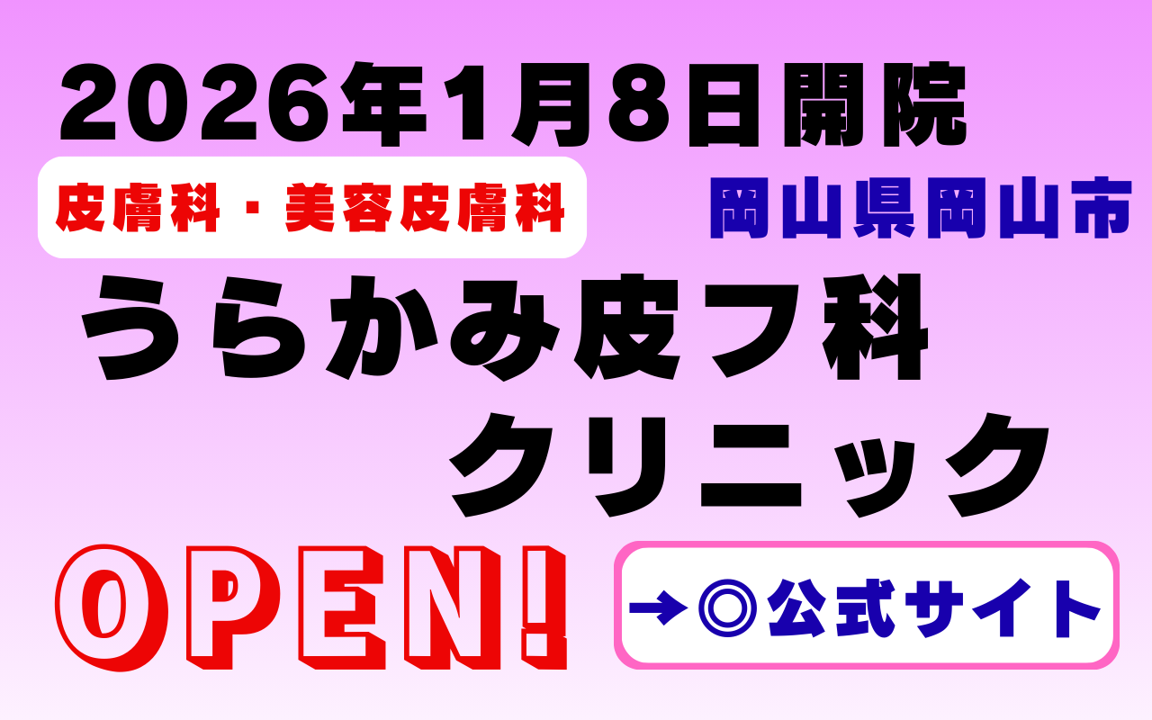 2026年1月8日、岡山県岡山市中区に新たに開院したのがうらかみ皮フ科クリニックです。東岡山駅近くという通いやすい立地に加え、駐車場完備で、通勤・通学途中やご家族での受診にも便利な皮膚科・美容皮膚科クリニックとして注目されています。