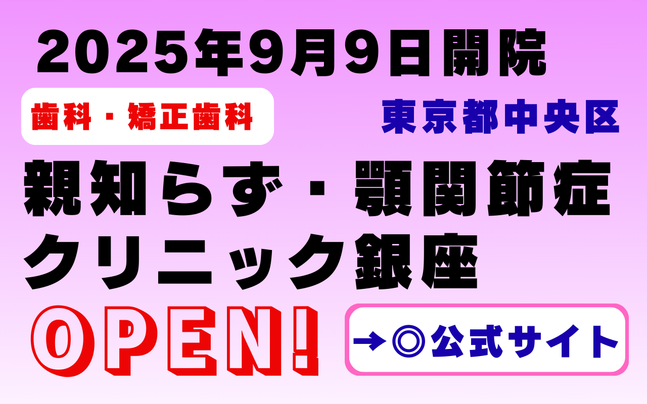 2025年9月9日、東京都中央区・銀座エリアに「親知らず・顎関節症クリニック銀座」が新しく開院しました。一般的な歯科医院とは異なり、こちらのクリニックは「親知らずの抜歯」「顎関節症の治療」「アスリートの歯科治療」という3つの分野に特化している点が大きな特徴です。