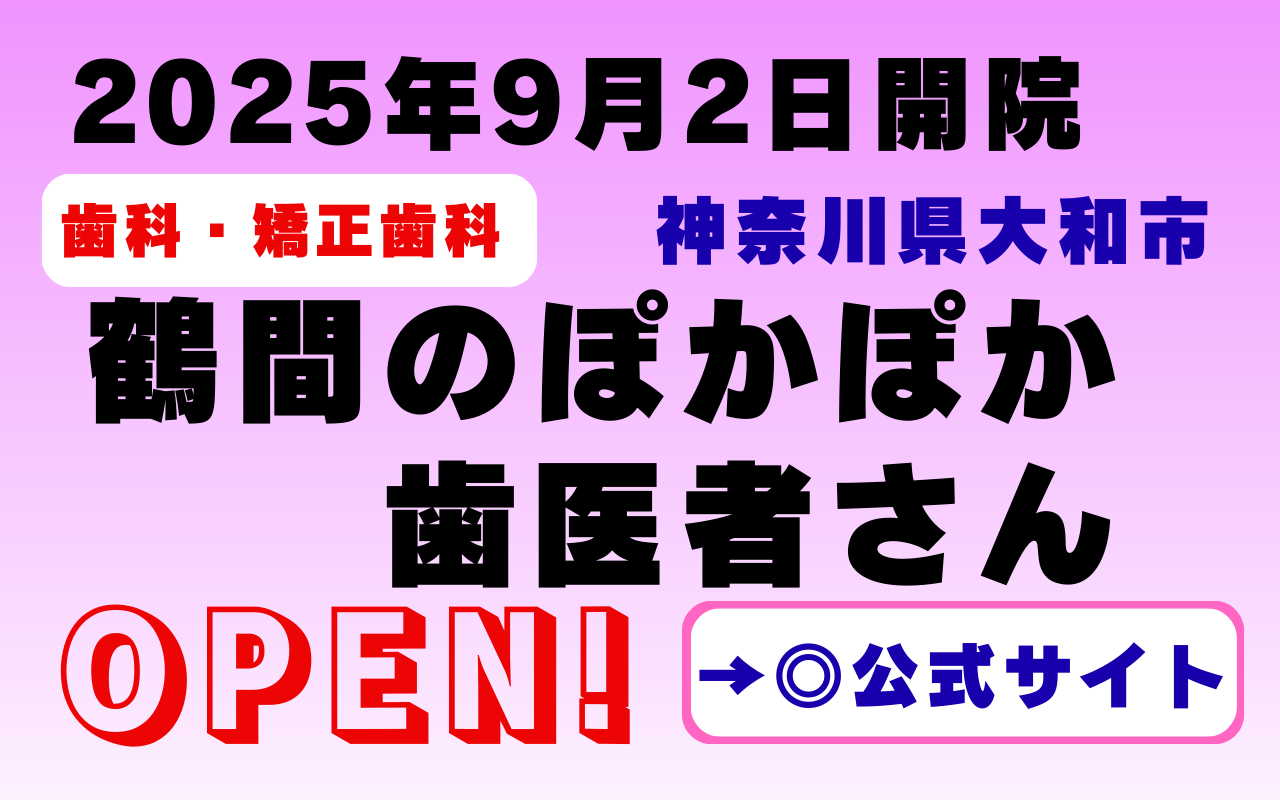 2025年9月2日、神奈川県大和市・鶴間エリアに新しくオープンしたのが、鶴間のぽかぽか歯医者さんです。名前からも伝わるように、地域の方が安心して通えるあたたかい雰囲気の歯科医院を目指しています。