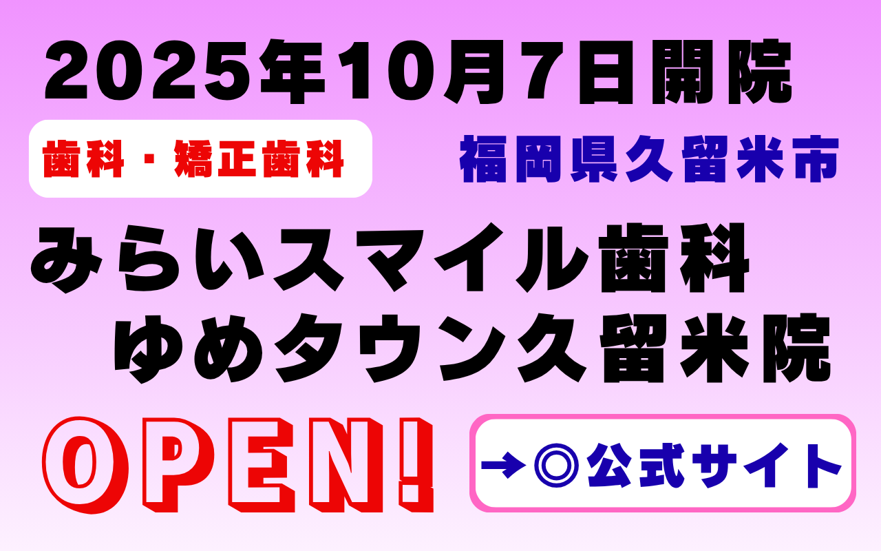 2025年10月7日、福岡県久留米市新合川エリアに新しく開院したのが、みらいスマイル歯科 ゆめタウン久留米院です。こちらのクリニックは、一般歯科・小児歯科・歯科口腔外科から、インプラント・審美治療まで幅広く対応しており、地域の方々の歯の健康をトータルにサポートする新規開院の歯科医院です。