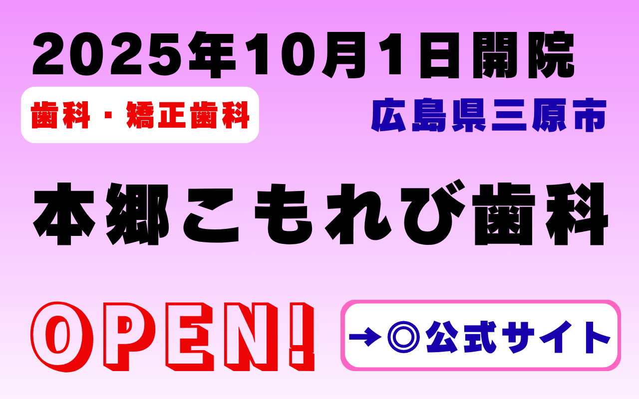 公式サイト:広島県三原市の歯医者なら本郷こもれび歯科|土日診療・当日来院OK・マックスバリュ本郷店すぐそば