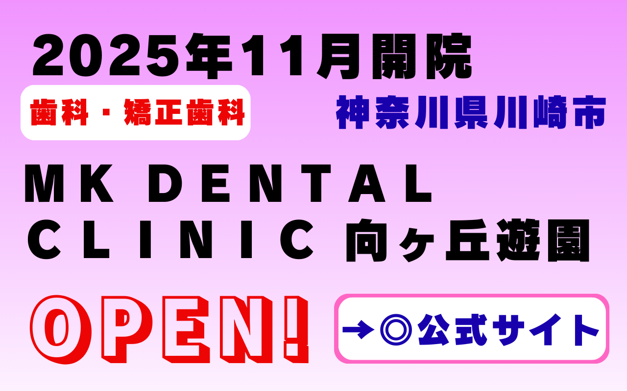 2025年11月、神奈川県川崎市多摩区に新しく開院した MK DENTAL CLINIC 向ヶ丘遊園。向ヶ丘遊園駅から徒歩2分、登戸駅からも徒歩6分と、駅近で通いやすい歯科医院として注目されています。虫歯治療や歯周病予防をはじめ、お口の健康維持をサポートする予防歯科も実施しており、地域の方々が気軽に通える環境が整っています。