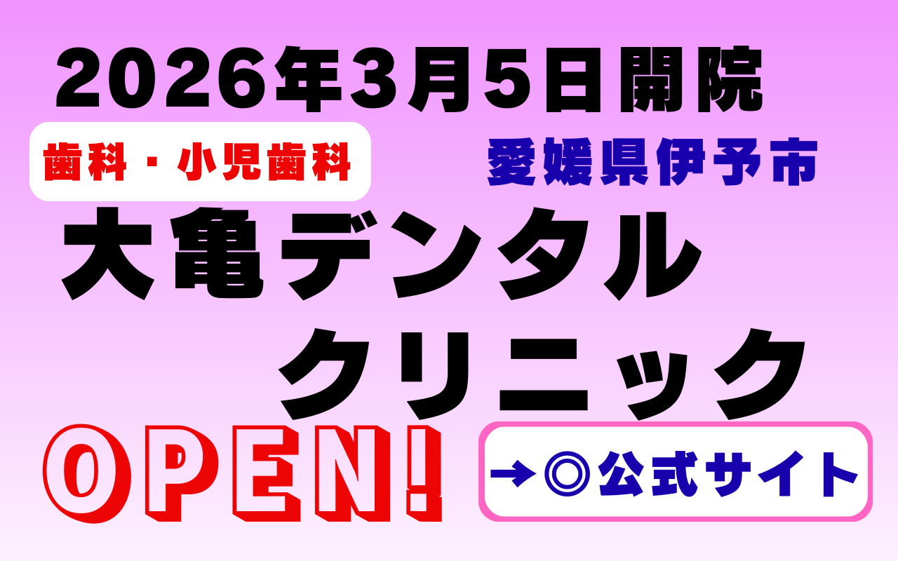 2026年3月5日、愛媛県伊予市に新しく開院した「大亀デンタルクリニック」。虫歯や歯周病といった日常的な歯科治療から、インプラント・矯正歯科・審美歯科まで幅広く対応する歯科クリニックとして注目されています。地域で長く通える歯科医院を探している方にとって、気になる存在になりそうです。