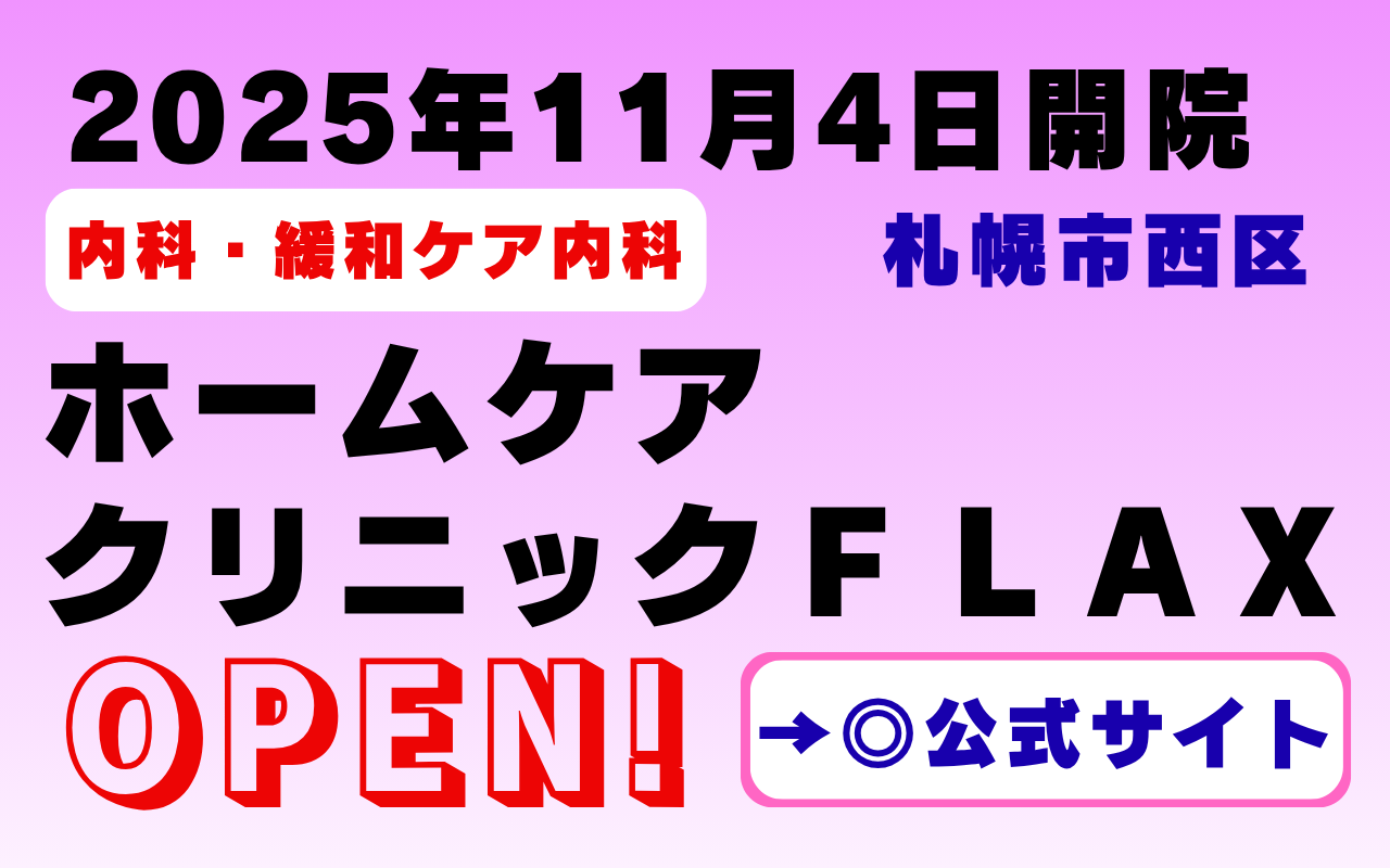 2025年11月4日、北海道札幌市西区八軒7条西に新しく開院したホームケアクリニックFLAX(フラックス)。地域に暮らす方々が「自宅で安心して療養生活を送りたい」と願う気持ちに寄り添いながら、内科診療訪問診療を中心に行うクリニックです。