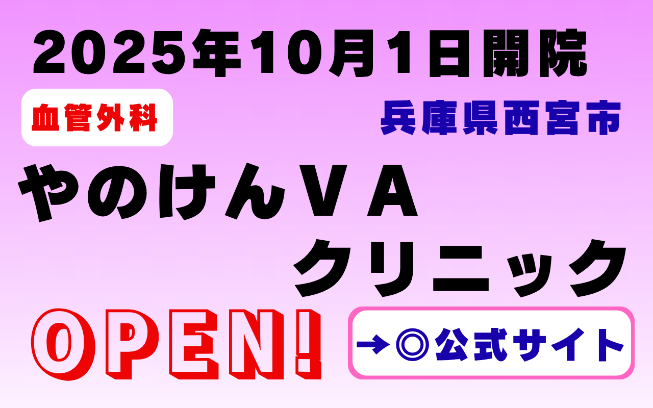 公式サイト:やのけんVAクリニック|兵庫県西宮市のバスキュラーアクセス・シャント専門クリニック – やのけんVAクリニックは、兵庫県西宮市にあるバスキュラーアクセス(シャント)専門クリニックです。透析患者様のシャント作製・再建・管理まで、専門医が丁寧に対応いたします。