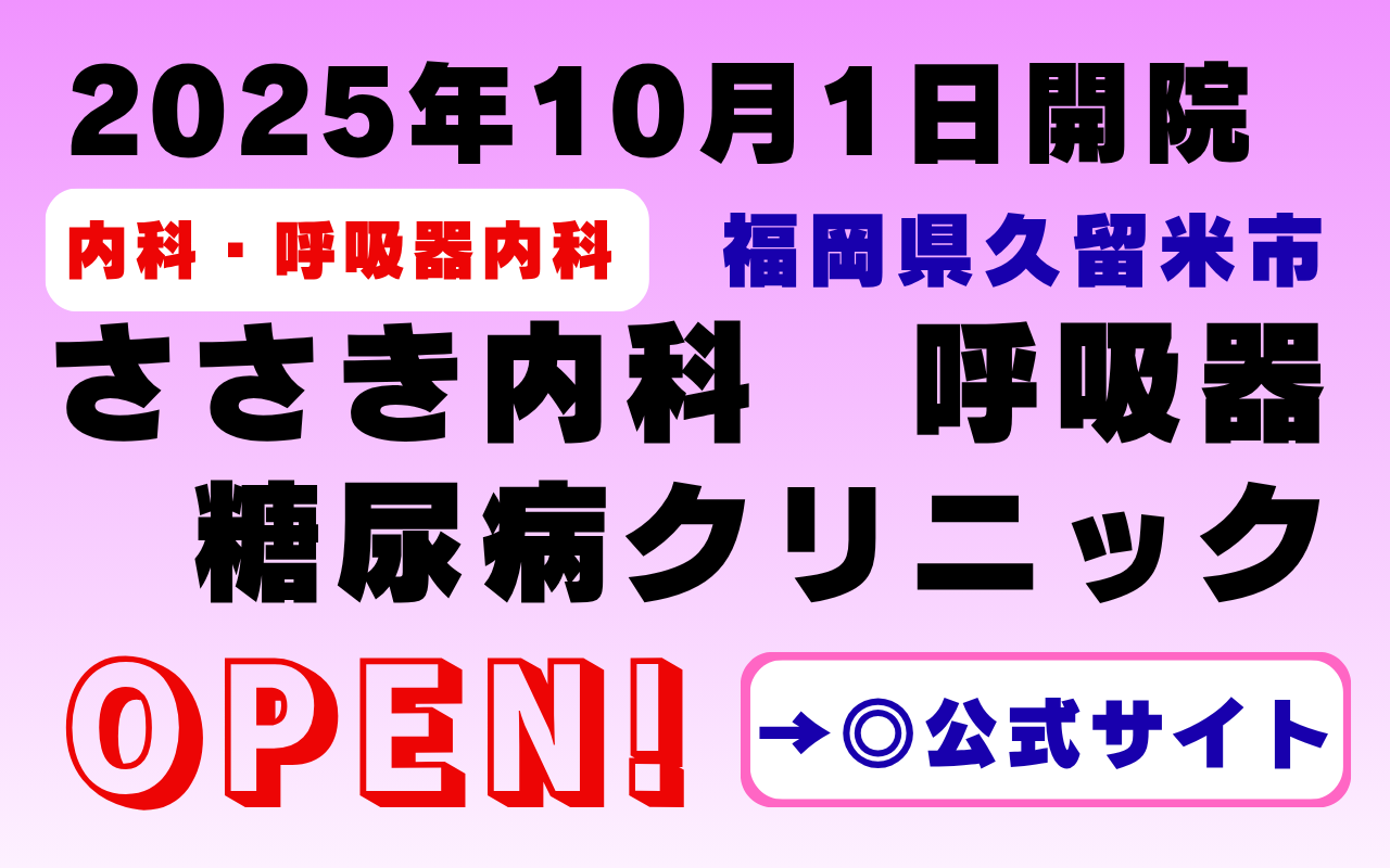 2025年10月1日、福岡県久留米市に新しく開院したささき内科 呼吸器 糖尿病クリニック。
