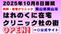 本サイトは新規開業医療機関の情報提供を目的としており、正確な情報掲載に努めておりますが、診療時間・休診日・診療内容等が変更となる場合がございます。受診をご検討の際は、必ず医療機関の公式情報をご確認いただきますようお願い申し上げます。