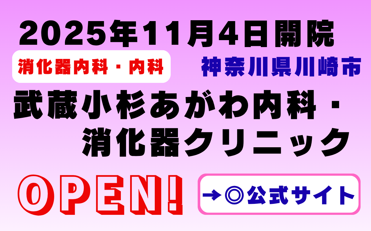 公式サイト:武蔵小杉あがわ内科・消化器クリニック|消化器内科・内視鏡内科・肛門内科 – 武蔵小杉駅と新丸子駅の内視鏡検査ができるクリニック