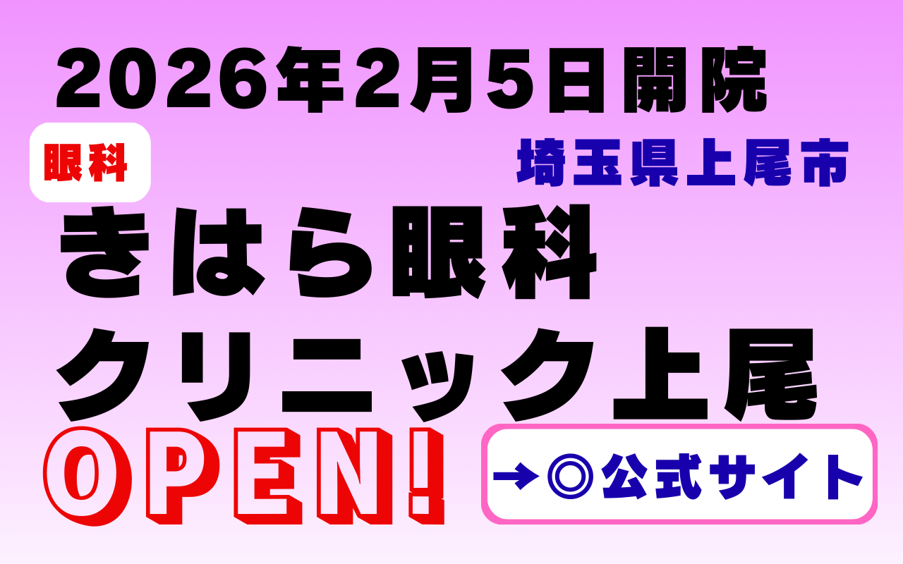上尾市で眼科を探している方、白内障の日帰り手術や近視矯正治療まで幅広く相談したい方は、ぜひチェックしておきたい新しい眼科クリニックです。