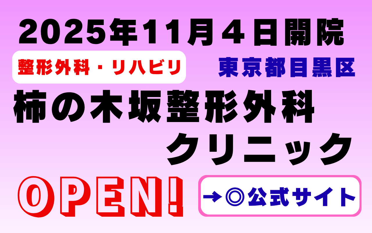 2025年11月、東京都目黒区・柿の木坂エリアに「柿の木坂整形外科クリニック」が新しく開院しました。地域の皆さんが安心して通える地域密着型の整形外科クリニックとして、日常のけがからスポーツ外傷、リハビリまで幅広く対応しています。