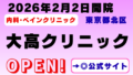 本サイトは新規開業医療機関の情報提供を目的としており、正確な情報掲載に努めておりますが、診療時間・休診日・診療内容等が変更となる場合がございます。受診をご検討の際は、必ず医療機関の公式情報をご確認いただきますようお願い申し上げます。