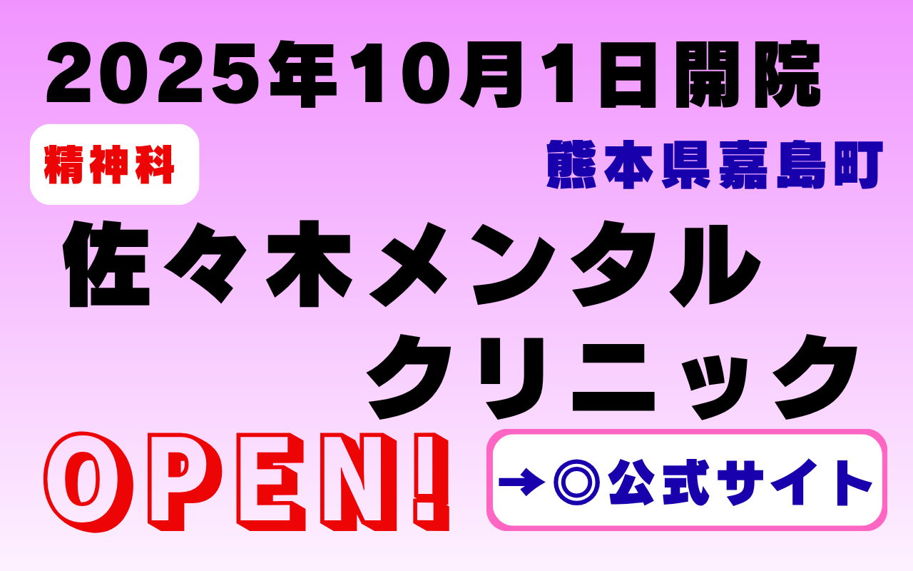 【佐々木メンタルクリニック】熊本県嘉島町に新規開院!大人と子どもの精神疾患対応
