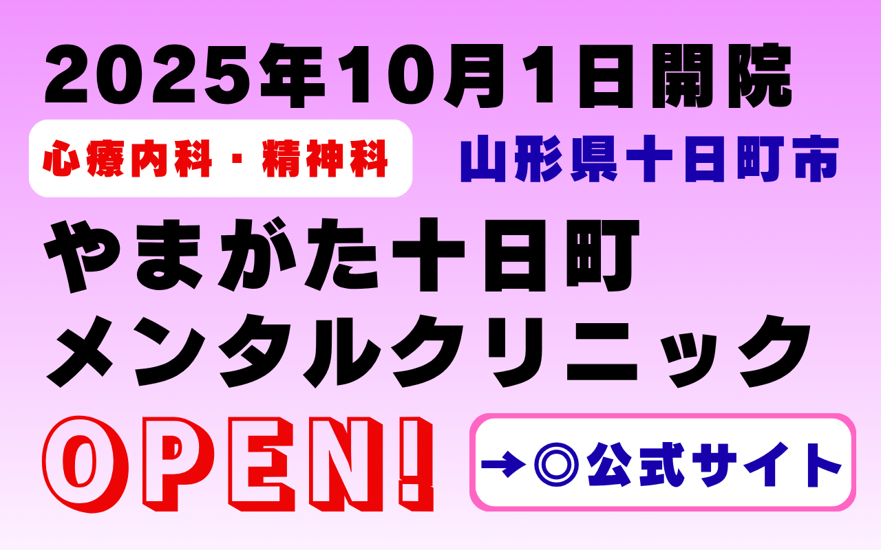 公式サイト:やまがた十日町メンタルクリニック 山形市 心療内科 精神科 | 2025年10月新規開院 山形市十日町 提携駐車場あり うつ病 パニック障害