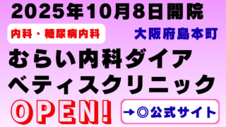 2025年10月、大阪府三島郡島本町に開院したむらい内科ダイアベティスクリニック。島本町唯一の糖尿病内科専門医が在籍し、糖尿病・生活習慣病・脳血管障害・心疾患・動脈硬化症などに幅広く対応。一般内科診療も行い、JR島本駅西口徒歩1分、駐車場完備。WEB予約対応で通いやすく、地域に寄り添う安心のクリニックです。