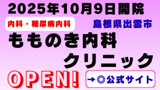 2025年10月9日、島根県出雲市に開院したもものき内科クリニック。**糖尿病内科・内分泌内科・一般内科・婦人科・美容皮膚科(自由診療)**に対応。糖尿病や甲状腺の専門資格を持つスタッフが在籍し、超音波検査や甲状腺ホルモンの院内測定も可能。出雲ICから車で5分、駐車場完備。女性医師による丁寧でやさしい診療が評判。WEB予約対応の、地域に寄り添う安心のクリニックです。